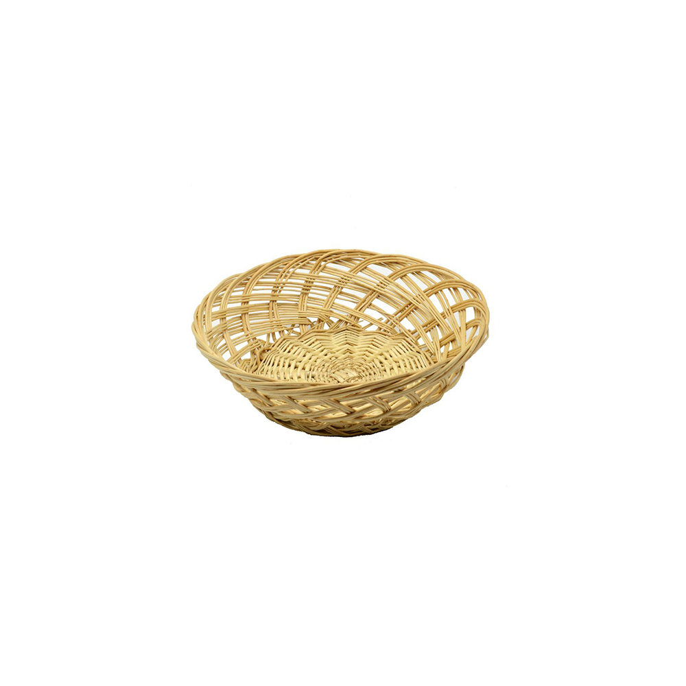 Cestino pane tondo colore beige, realizzato in vimini naturale e ideale al contatto con gli alimenti.